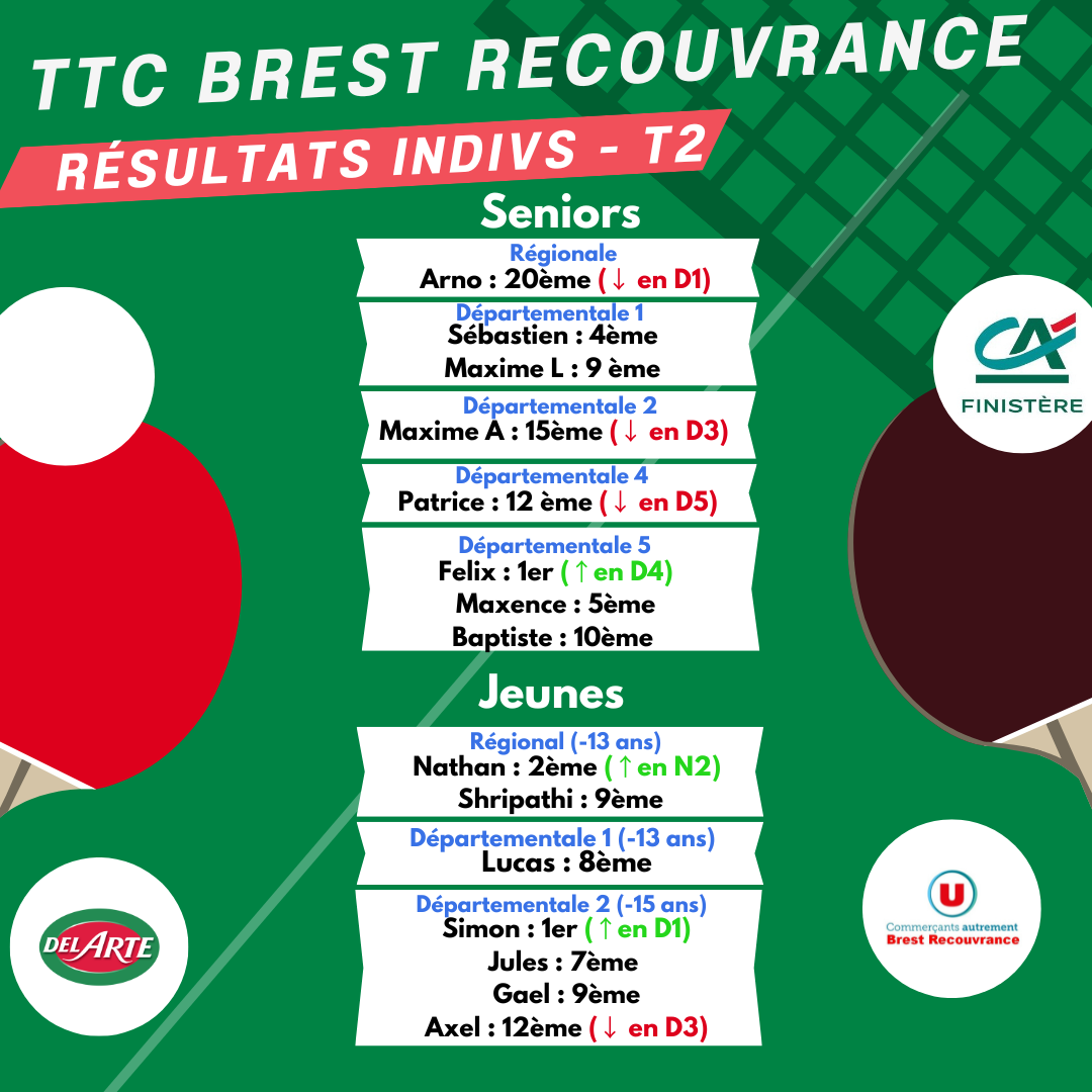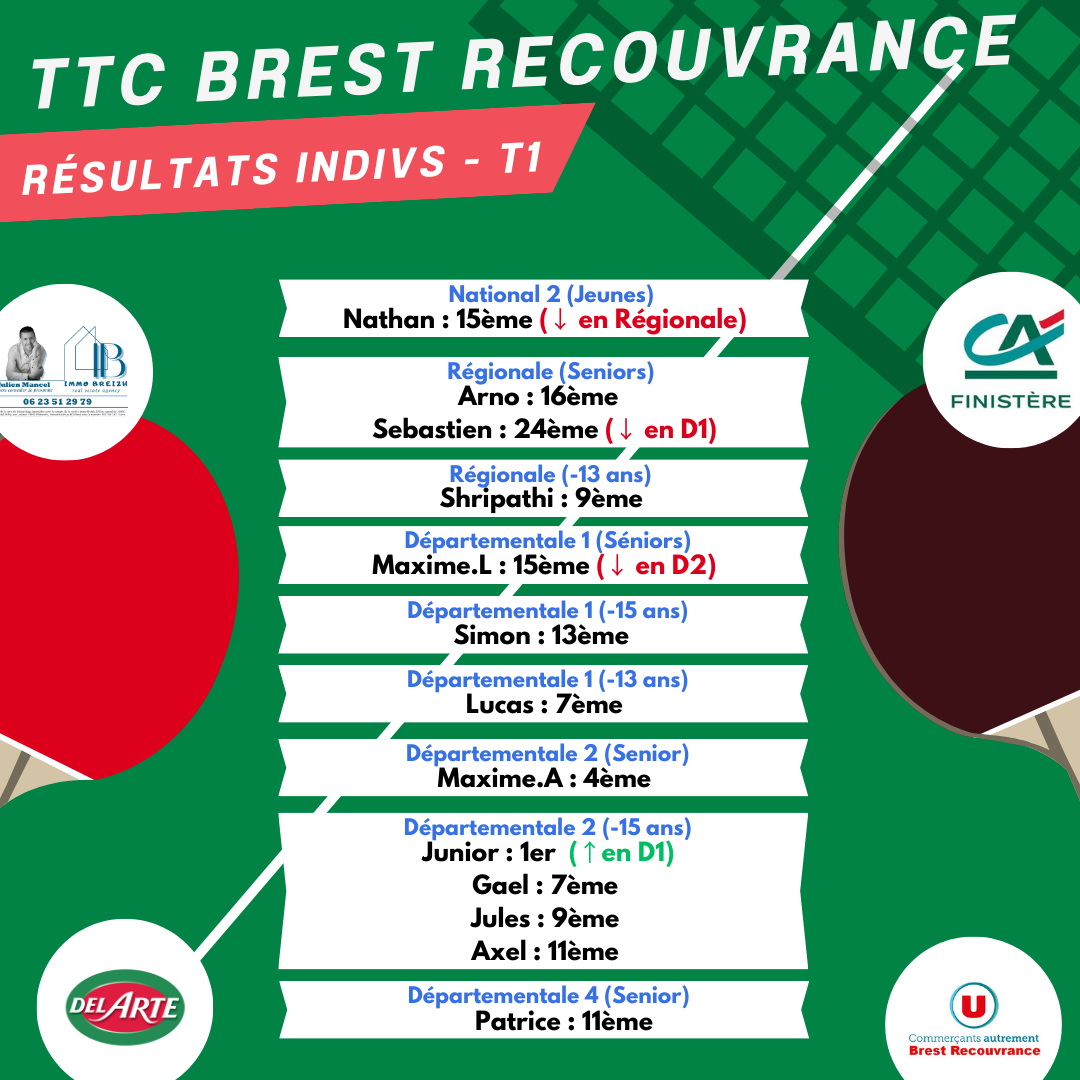Le TTC BREST Recouvrance était présent sur 8 podiums dont 1 titre (Clément/Maxime en doubles juniors).