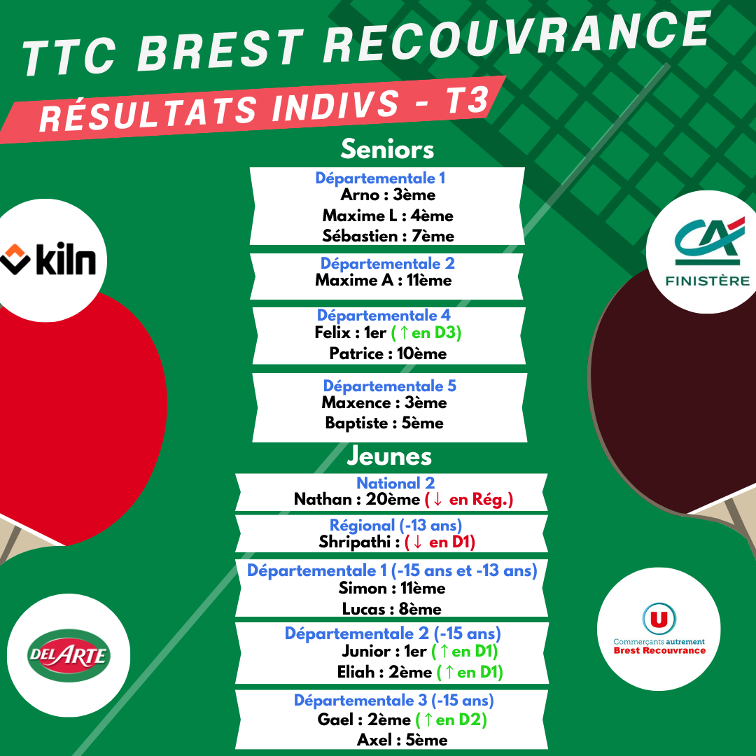 Avec deux places de "second" et une place de "troisième" au niveau des challenges, le TTC BREST Recouvrance s'inscrit petit à petit, et de manière durable, dans la hiérarchie finistèrienne.