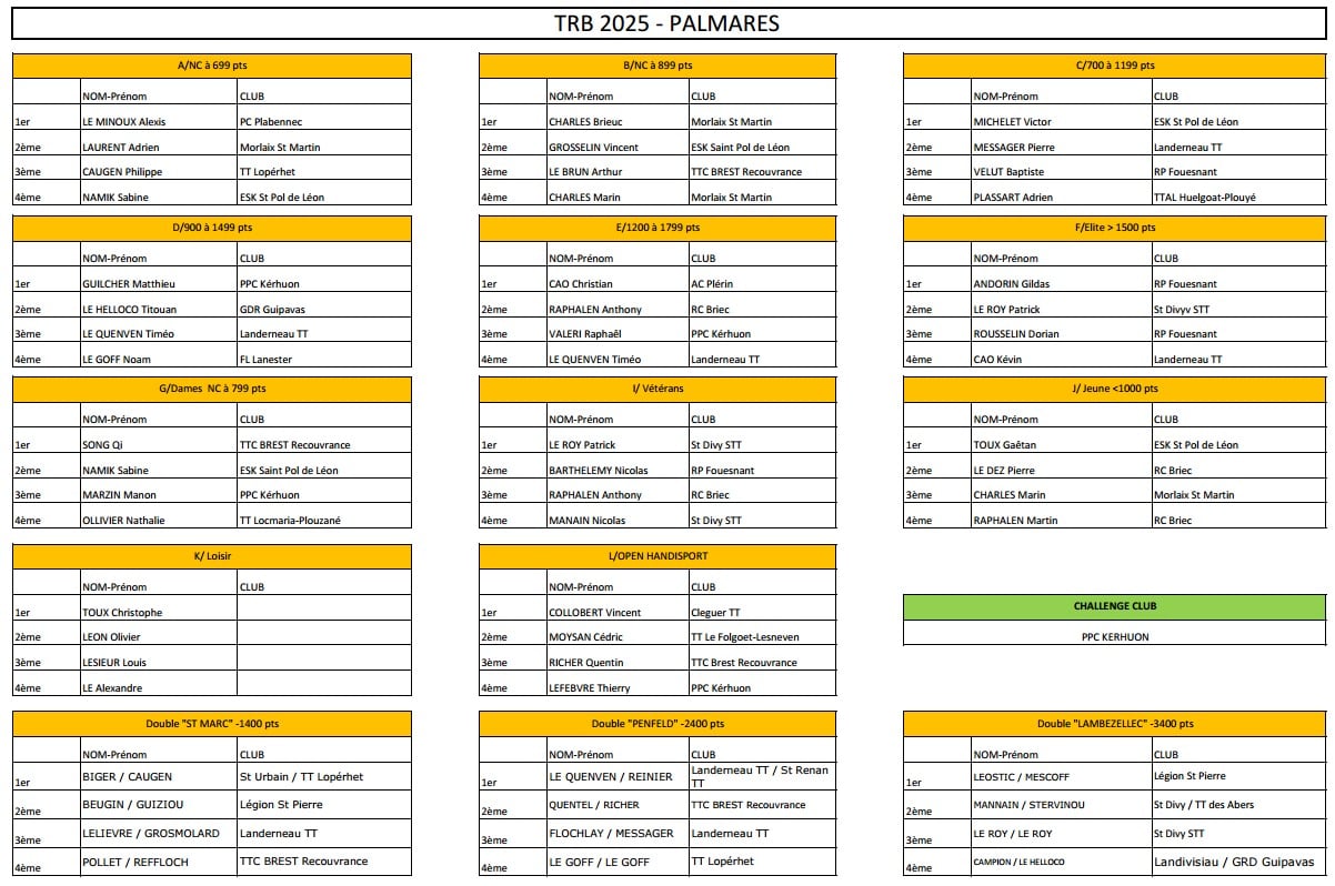 Résultats/Podiums Doubles (Facebook)