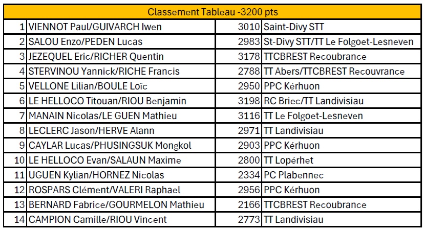 - tableau B à 20h30 : cumul des 2 joueurs inférieur ou égal à 3200 points