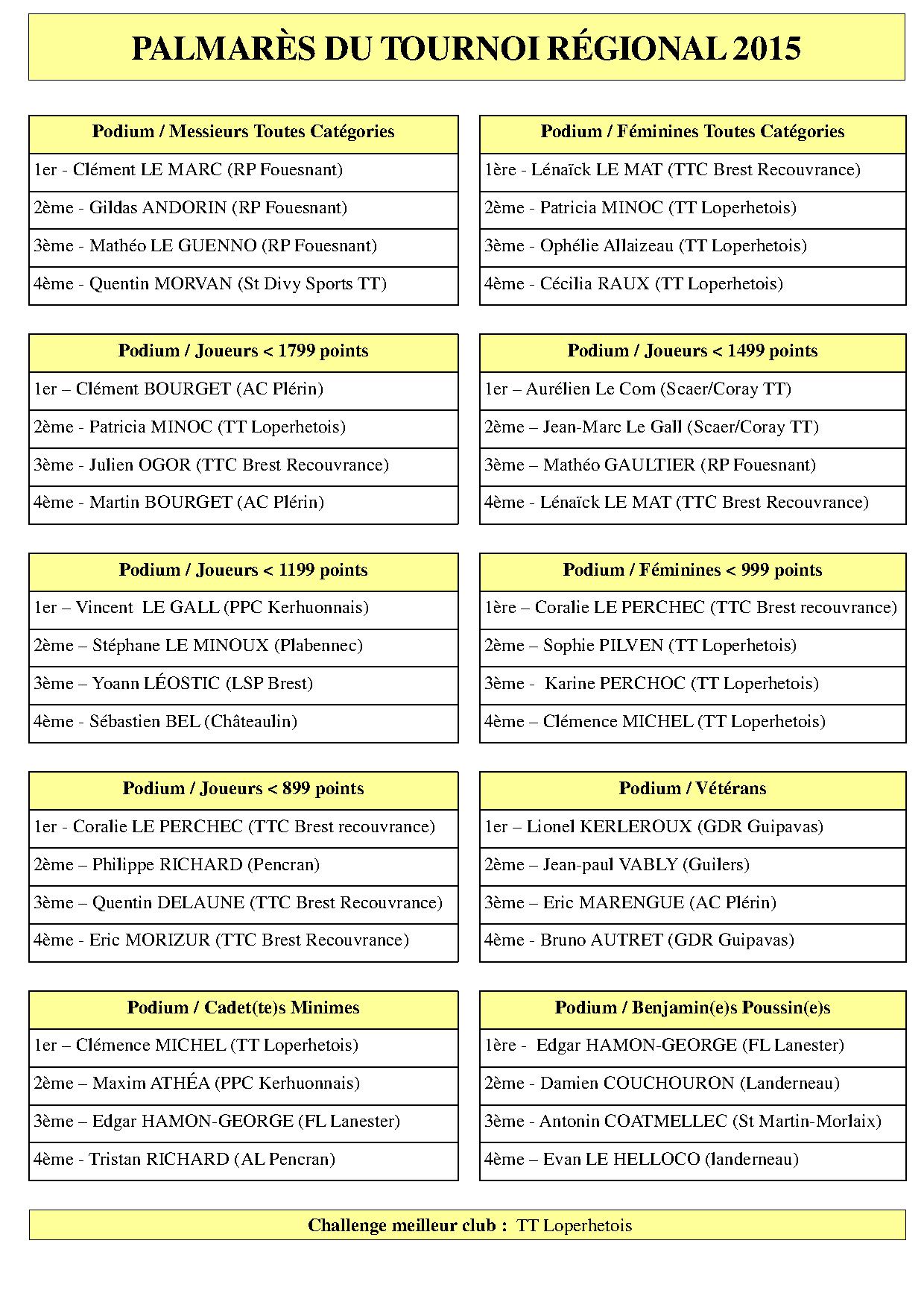 215 joueuses et joueurs en simples le dimanche et 52 doubles le samedi !