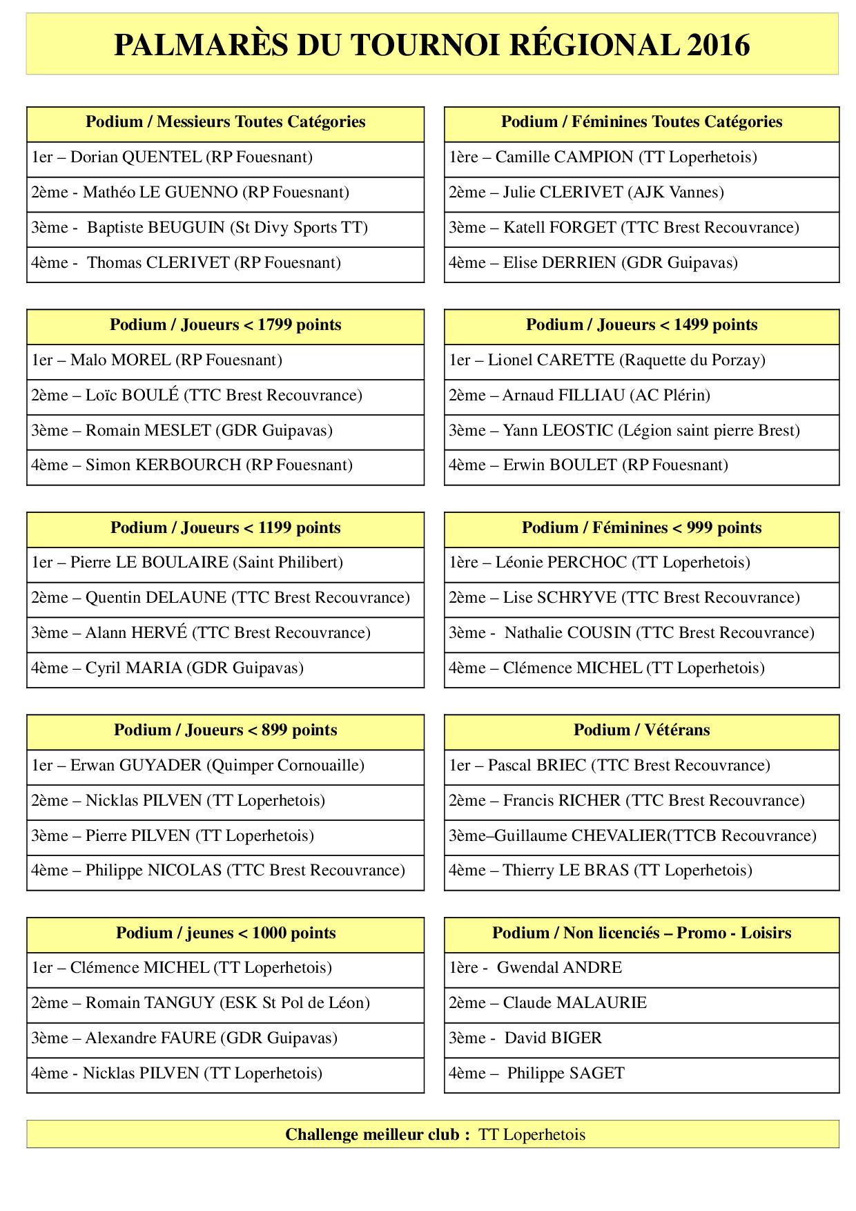 L'édition 2016 a réuni 51 équipes de doubles le samedi, et 147 joueurs et joueuses en simples le dimanche.