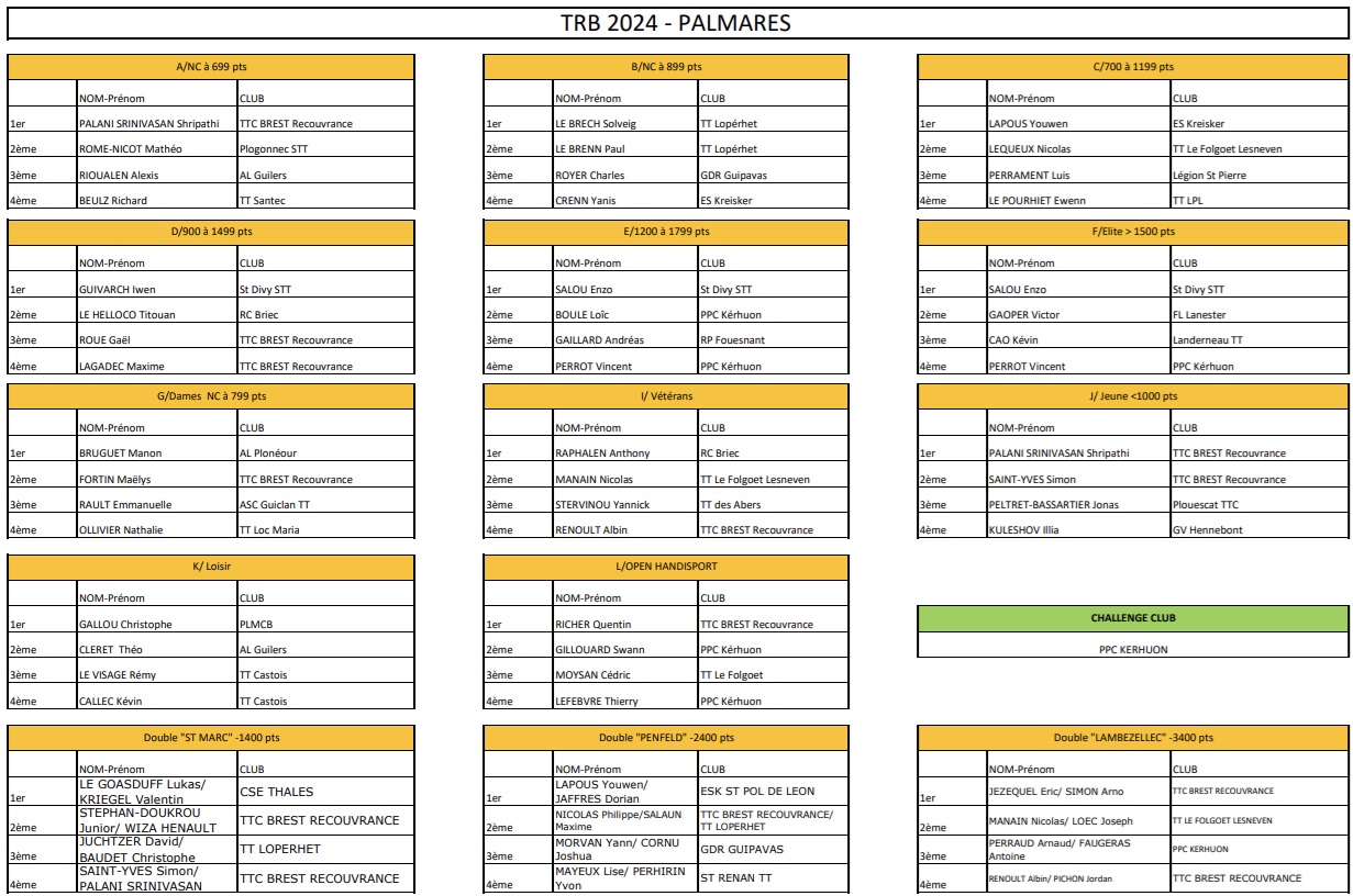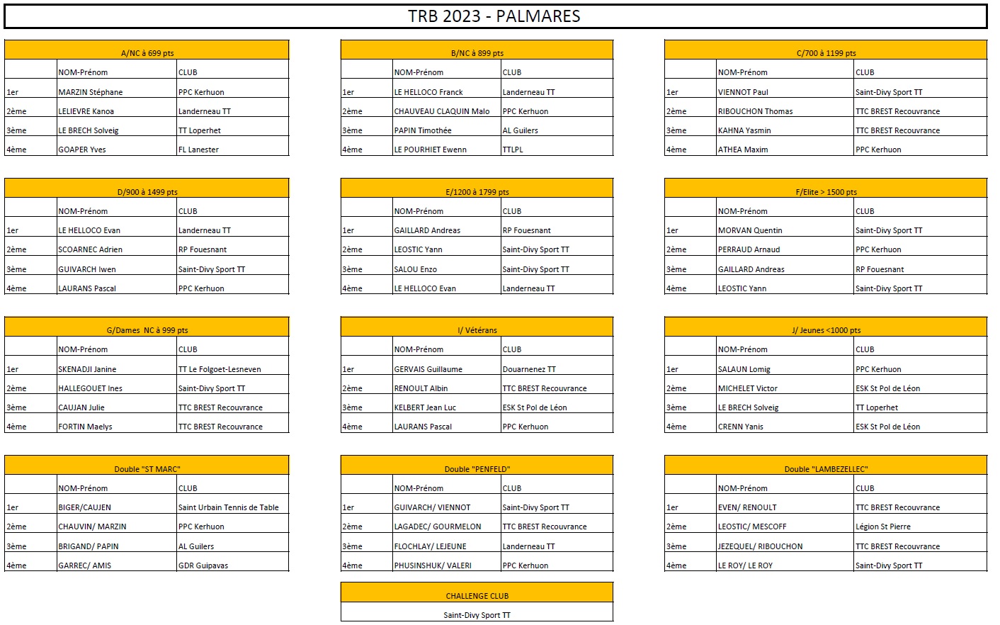 145 joueuses et joueurs en simples le dimanche et 53 doubles le samedi !
